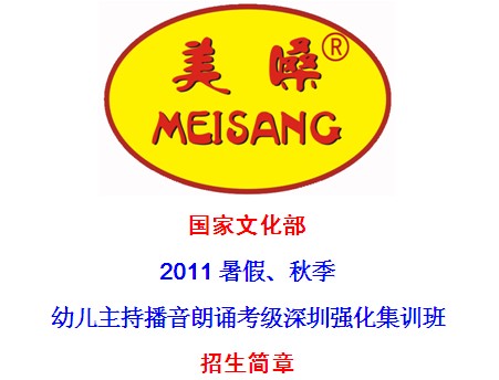 国家文化部已批准朗诵艺术考级立项,为了推动深圳市朗诵艺术事业的发展,为了让朗诵艺术走进校园,深圳市美嗓歌唱朗诵培训中心特举办"2011暑假、秋季幼儿主持播音朗诵考级强化集训班".
