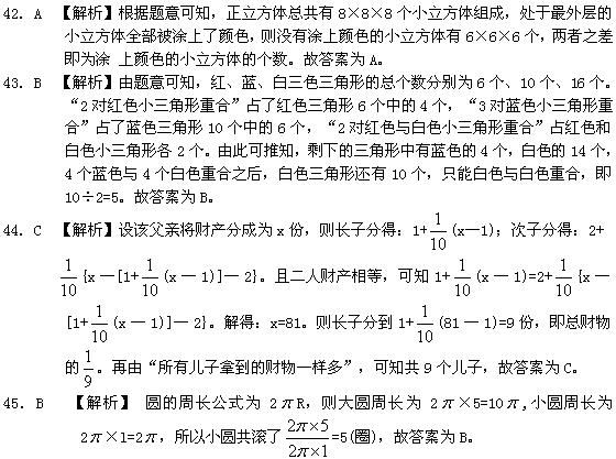 38.D 【解析】三项之和的个位数与三项个位数之和的个位数相同。9+9+9=27,可知三项之和的个位数为7,故答案为D。