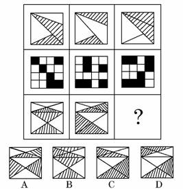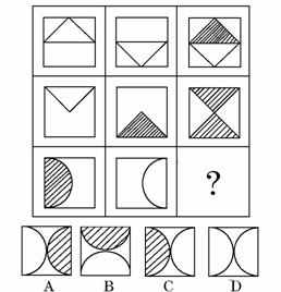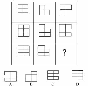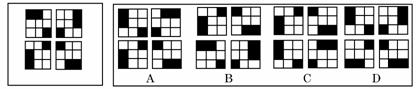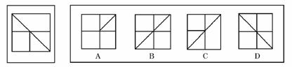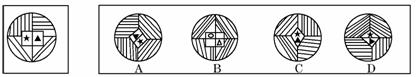 (二)左边的图形由若干个元素组成。右边的备选图形中只有一个是由组成左边图形式的元素组成的,请选出这一个。注意,组成新的图形时,只能在同一平面上,方向、位置可能出现变化。