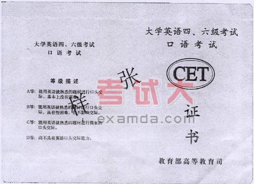 C 等以上者将获得由教育部高教司颁发的注有 CET Spoken English Test 成绩等级的 CET 证书。