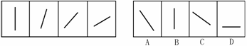 解答:在例题1中,最左边的图形中的直线是向上直立的,其后图形中的直线逐渐向右倒下。第5个图形中的直线应该恰好倒下。因此,正确的答案是D。