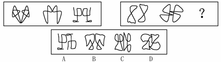2.每道题包含两套图形和可供选择的4个图形。这两套图形具有某种相似性,也存在某种差异。要求你从四个选项中选择你认为最适合取代问号的一个。正确的答案应不仅使两套图形表现出最大的相似性,而且使第二套图形也表现出自己的特征。