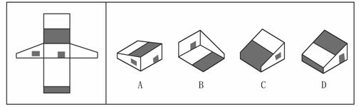 解答:在例题中,只有D可以由左边的纸板折叠而成。因此,正确答案是D。