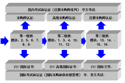 ITC采购与供应链管理国际资格认证和注册采购师资格认证使用共同的认证培训内容模块,学员经培训后可以根据自己的实际情况选择参加认证考试类别: