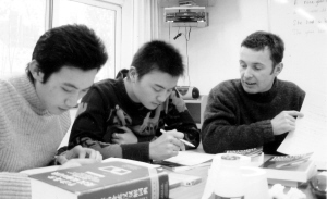 参加雅思考试的学生在老师指导下进行复习