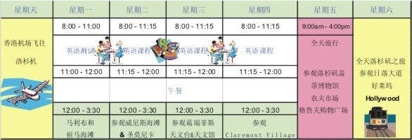 4.丰富多彩的课外,5个半天的课外活动、3天全天洛杉矶户外旅行及1整天的环球影城之旅;