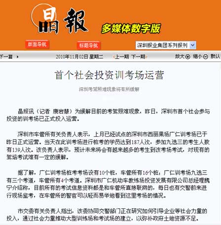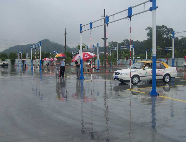 作为深圳市首个社会参与投资的训考场,广仁训考场包括桩考考场和九选三考场。桩考考场设有10个桩,车管所有16个桩;广仁训考场九选三有三个考道,车管所有4个考道。深圳市广仁机动车教练场投资发展有限公司总经理魏宁介绍称,目前所有的考试信息资料都是和车管所直接联网的,每日也有交警前来进行现场监考,在车管所的警官可以轻而易举地看到这里考场的情况。