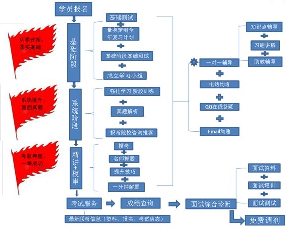 全程名师主讲:使学员有效利用起每一分钟学习时间,顾问委员会所有成员担任主讲老师,迅速把握联考命题方向和动态。