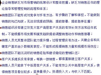 某通信公司从终端通信产品向大型系统设备转型的发展阶段,为其全国销售大区组建项目型销售团队进行营销规划和系列培训。参与营销中枢销售项目管理机制的政策、流程制定;促成该公司全面推行、实施销售项目管理制度和流程;