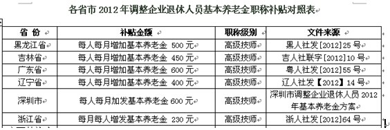 2、可享受免费津贴,与退休金养老金挂钩,例如下表:(部分省市)