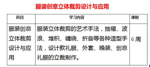 服装立体裁剪的用具和准备,服装立体裁剪的技术原理,服装立体裁剪的基本手法,原形的立体裁剪,各种领型、袖型、分割线的立体裁剪,省道转移,衣身的放松量设置,衬衣、裙的立体裁剪,常见礼服的立体裁剪。