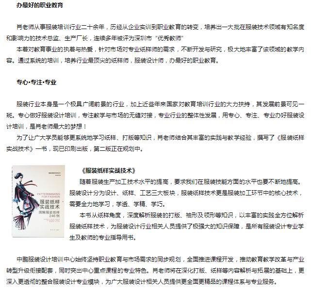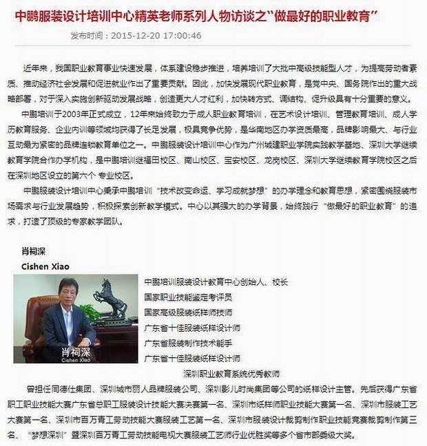 课程名称: 中鹏服装设计培训中心精英老师系列人物访谈之“做最好的职业教育”