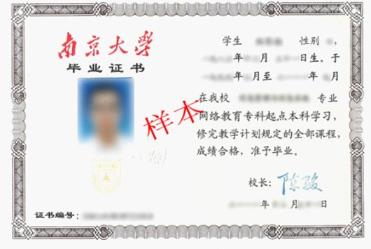 学生在学习期限内按教学计划修满规定学分,成绩合格,经南京大学审核,符合毕业条件准予毕业者,由南京大学颁发毕业证书(印有“网络教育”字样)。本科毕业生符合《中华人民共和国学位条例》和《南京大学授予现代远程教育本科毕业生学士学位的实施细则(2009年5月修订)》条件者,可授予南京大学成人高等教育本科毕业生学士学位(印有“网络教育”字样)。毕业证书教育部电子注册,国家予以承认。