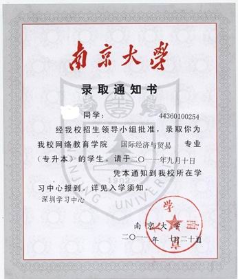 到南京大学现代远程教育深圳学习中心报名。持不符合条件的毕业证书或假证件者,后果自负。