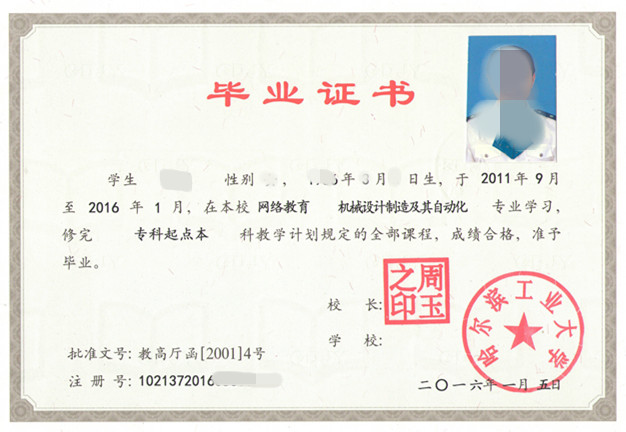 我校远程教育学生,修满规定学分(本科学生需通过教育部组织的2门统考科目),颁发哈尔滨工业大学远程教育毕业证书。远程教育属于国民教育系列高等学历教育,国家承认学历。证书电子注册信息可在“中国高等教育学生信息网”中查询。其中对达到相应学位标准的学生颁发成人教育学士学位证书 。