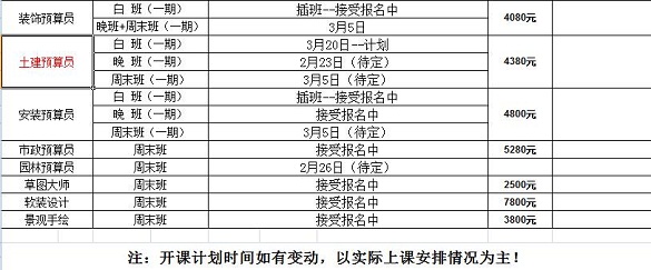 课程名称: 深圳开拓者土建预算员学习培训招生
