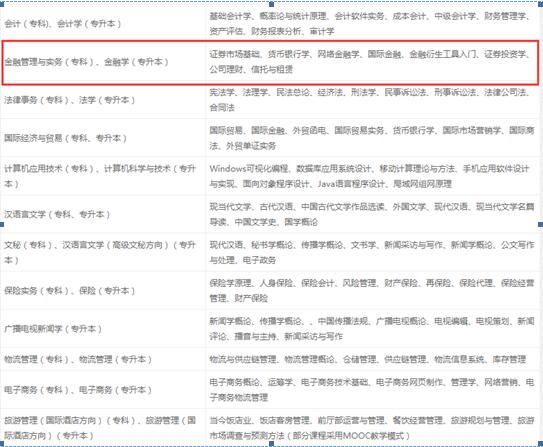 高起专:工商企业管理、人力资源管理、行政管理、财务管理、物业管理、经济管理、销售管理、工程管理、旅游管理、会计、法律事务、市场营销、汉语言文学、金融管理与实务、文秘、物流管理(专)、电子商务(专)、旅游管理(国际酒店方向)专、 药学、计算机应用技术、餐饮管理