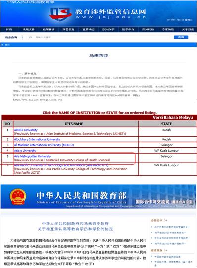 马两国学历互认名单中,详情可查阅中国教育部网: