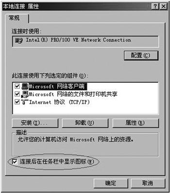图5 如图进行相关设置,以使“本地连接”图标显示在任务栏中