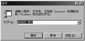 1.单击“开始→运行”,在文本框中输入命令“GPEDIT.MSC”后,单击“确定”按钮。(如图1)
