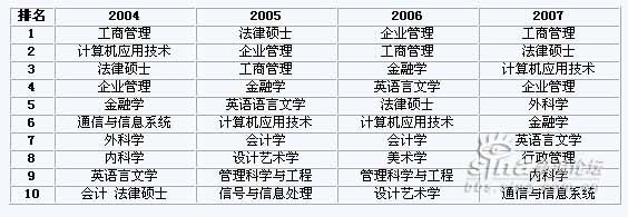 特殊专业硕士:主要指工商管理硕士(MBA)、法律硕士(JM)和软件工程硕士(MSE)以及公共管理硕士(MPA)等等。和多倾向于“研究”的传统意义上的硕士研究生相比,专业硕士研究生在培养方面更注重的是实践与应用,培养的时间也较短(一般为2年)。工商管理硕士(MBA)招生考试相对独立,因为培养方向主要是在应用方面,因此,特殊专业硕士的专业课水平要求较浅,更多的是考一些主要课程的基础知识。虽然特殊专业硕士招生学校数目少,但一般招生量较大,对于一些跨专业考试的考生来说,似乎报考特殊专业硕士更合适一些—至少可以在专业课上不被“科班出身”的考生拉得太远。