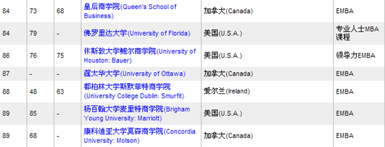 这是英国《金融时报》第7年发布EMBA课程(针对在职高级管理人员开办的MBA课程)排名。